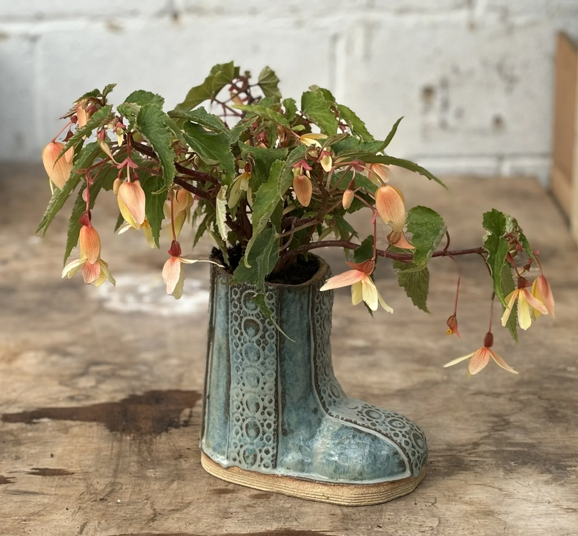 I’ve made my ceramic boots into unique planters, using a variety of vibrant plants.